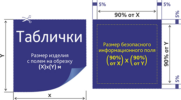 Размер безопасного информационного поля (где будет текст, логотип): (90% от Х) х (90% от Y) м;